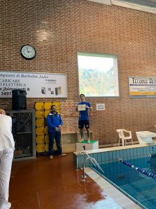 I ragazzi della squadra gialloblù, numerosi sul piano vasca, si sono bene distinti: i due veterani della squadra Simone Dama e Marcello Santini portano a casa rispettivamente un argento ed un bronzo per Dama e un oro per Santini; brilla Lisa Nappi, classe 2004, che è salita sul podio in ogni gara disputata, portando a casa tre argenti ed un bronzo; grandi risultati anche per Andrea Zanni, che si piazza sul secondo gradino del podio nei 50 e 100 pinne, siglando i primati personali; bene Alessia Bruzzese e Alice Nanetti, la prima giunge terza nei 50 pinne e 50 monopinna, la seconda è terza nei 50 monopinna di gomma. Zanni, Nappi, Dotti e Balan si sono imposti nella staffetta 4×50 pinne categoria Juniores, portando punti preziosi e una bellissima medaglia d’oro; Dama, Santini, Bruzzese e Nanetti salgono sul terzo gradino del podio nella staffetta 4×50 monopinna categoria Senior.